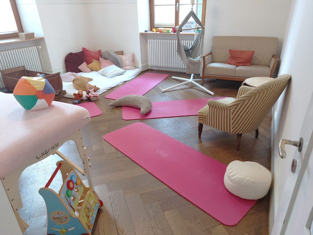 Seit dem 12. September 2022 begleiten wir im Bindungshaus Familien mit Babys. Neben einem gemütlichen Gemeinschaftsraum stehen den Eltern-Kind-Paaren weitere Räume nach individuellem Bedarf zur Verfügung. Die Himmelbetten im Ruheraum ermöglichen Rückzug und Erholung. Die Praxisräume werden für das vielseitige Therapie- und Praxisangebot genutzt.